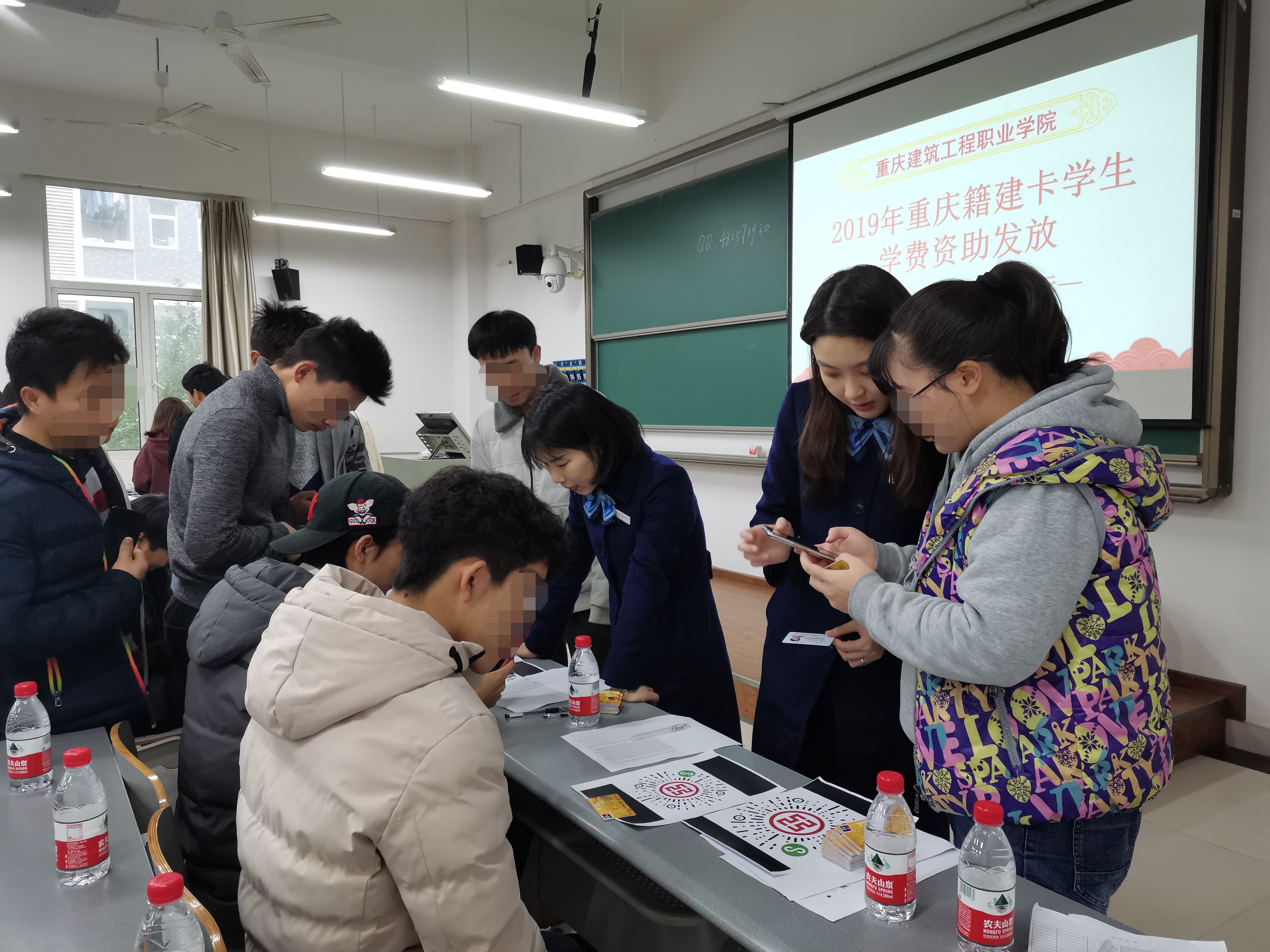 根据市教委要求,以前享受过学费资助的,其学费资助金已由中国工商银行或中信银行直接打入了学生本人银行卡中;首次享受学费资助的,分别由中国工商银行或中信银行协同我院现场为学生发放并激活银行卡,激活后即可领取卡中的学费资助金。2019年,我院共有379名重庆籍建卡学生享受学费资助,资助金额共计286.51万元。