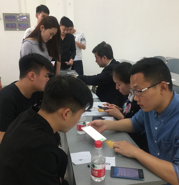 2018年4月12日9:30,我院在笃学楼209教室为重庆籍建卡贫困户学生发放学费资助银行卡。根据市教委要求,本次学费资助金由中国工商银行和中信银行代为发放,发放的是2018年春季学期的学费,两家银行已为所有受助学生办理了银行卡,并将资助金打入了银行卡,受助学生领取银行卡激活后即可使用。