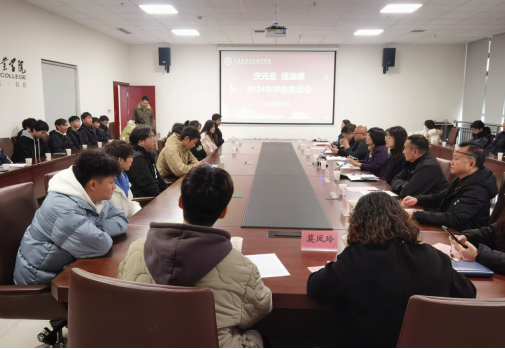 12月26日上午,koko体育在学生活动中心201召开“庆元旦·送温暖”学生座谈会。校党委副书记龚群英,党委学生工作部负责人、各二级学院党总支书记(副书记)、学工办主任和学生代表共50余人参加了本次座谈会。座谈会由学工部部长卢嘉主持。