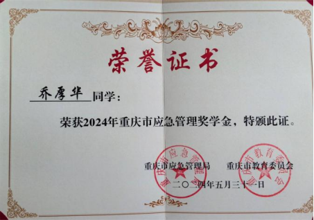 近日,重庆市应急管理局和重庆市教育委员会发布了《关于2024年重庆市应急管理奖学金奖教金获奖者的通报》(渝应急发〔2024〕63号)。经过层层筛选和严格评审,koko体育交通与市政工程学院道路与桥梁工程技术专业乔厚华荣获应急管理奖学金。