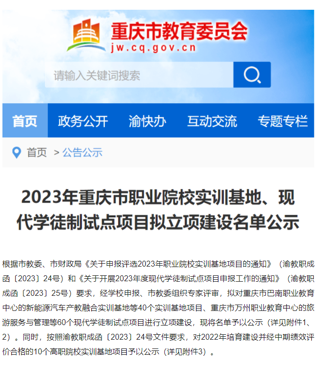 近日,重庆市教委对2023年重庆市职业教育实训基地及现代学徒制试点项目立项建设名单进行了公示,koko体育建设管理学院建设工程管理专业获批职业院校现代学徒制试点项目建设。