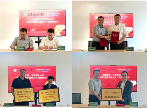 此外,本次研讨会还举行了学校与广联达共建“绿色低碳建筑研究中心”签约仪式。学校和广联达相互设立“党建结队共建单位”,双方就党建工作、智能建造专业建设、科研领域合作、产教融合校企合作的全面推进等核心事项进行洽谈。会后,全体与会人员一同实地考察了“智慧广阳岛项目”。