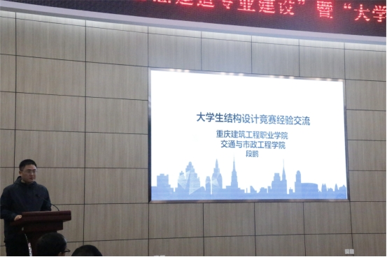 在交流讨论环节中,重庆交通大学土木工程学院副院长郭增伟、重庆科技学院建筑工程学院副院长赵宝云、重庆文理学院土木工程学院副院长张海龙、重庆建筑科技职业学院建筑工程学院院长刘娜娜分别从学校竞赛制度、学生选拔模式、团队教师组建等方面进行了经验交流。