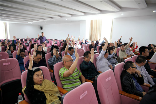 大会在庄严的国歌中拉开序幕,全体与会代表听取了吴国雄院长所作的《抓住机遇 凝心聚力 奋力谱写优质高职院校建设新篇章》工作报告,听取财务处处长郭高的《2017年财务收支情况及2018年财务预算的报告》工作通报,听取组织人事处处长蒋东做《2017年学院超额绩效增量部分分配实施方案》。随后,与会代表对2017年学院超额绩效增量部分分配实施方案报告投票,通过了该方案。