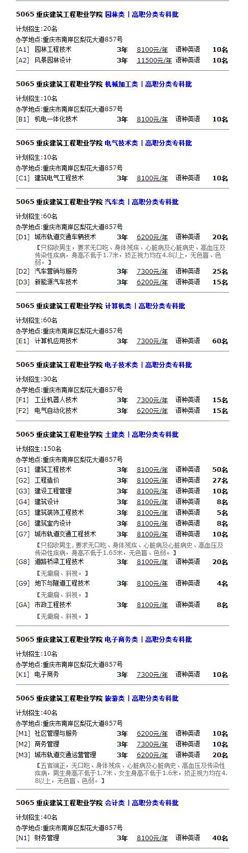 学院2021年重庆市高等职业教育分类考试招生章程