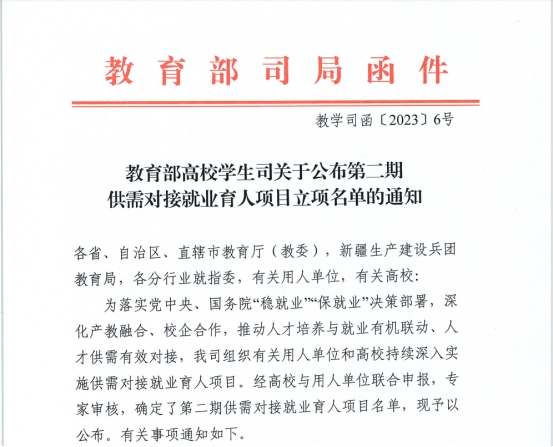 4月6日,教育部高校学生司公布《教育部高校学生司关于公布第二期供需对接就业育人项目立项名单的通知》(教学司函〔2023〕6号),koko体育共有7个项目获得立项。