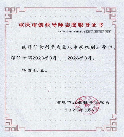 近日,重庆市人力资源和社会保障局公布了2022年重庆市高级创业导师名单,koko体育马克思主义学院黄利平老师获评“重庆市高级创业导师”称号。